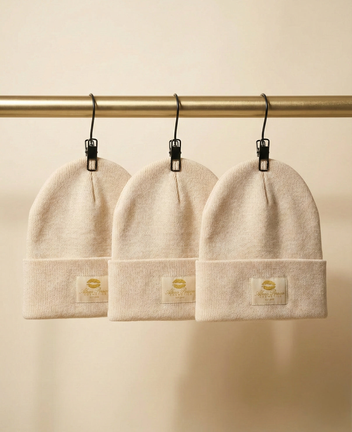 Our limited edition APC beanie is BACK! Features the original Alexa Persico logo, a quiet nod to where it all started. Designed in a soft beige knit with metallic gold embroidery, it’s effortless, timeless, and instantly recognizable if you know, you know.